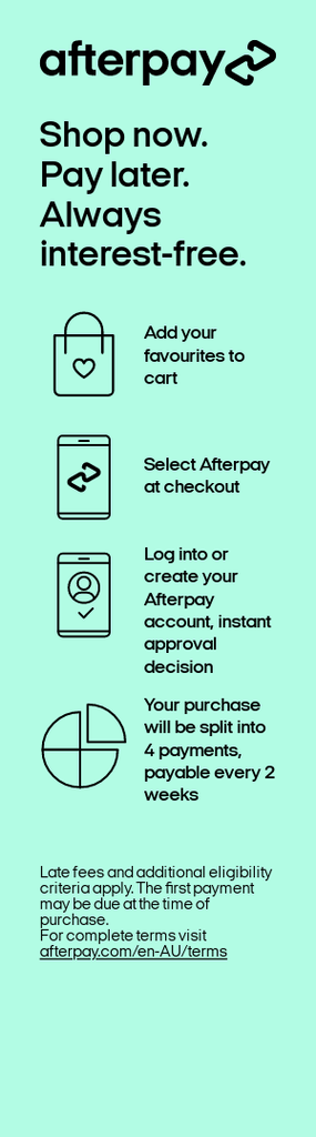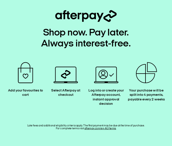 Pay later over 4 instalments. The first payment is taken when the order is processed.